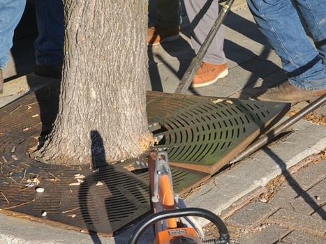 CITY CREWS REMOVE GRATES AROUND SOME OF THE DOWNTOWN TREES