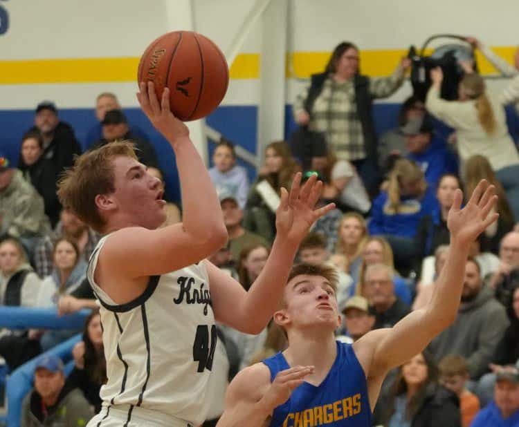Goodridge-Grygla looked to get off to a solid start, and they did so, as they went on a 9-2 run to start the game. The Knights had an answer, though, as back-to-back three-pointers from Branson Solheim and Tyler Evitts cut the lead down to 9-8 with 11:54 to go. Unfortunately for the Knights, they would only score 4 more points in the remainder of the half. The Chargers began to dominate in all aspects of the game; causing 12 turnovers on defense and making nearly every shot on offense. The Knights got layups from Evitts and Jaycer Davis, but the Chargers were simply overwhelming. They scored 15 bench points and were perfect from the foul line, and this all led to a 29-4 run to end the half, giving the Chargers a 38-12 lead at the break.