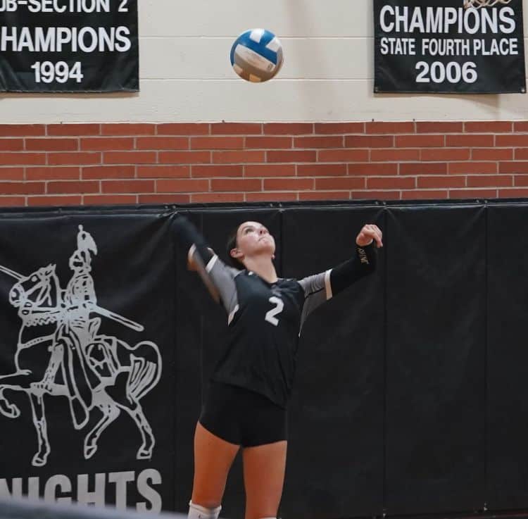 LPA couldn’t have gotten off to a better start, as two Kenna Mattson aces propelled a 7-1 run to start the match. The Knights tried to find their groove after a quick timeout, getting a big Emma Schultes block, but the LPA offense continued to swing freely, and a Katelyn Smith kill sparked an 8-3 run, putting the Raiders up 15-4. After the second Knights timeout, Brooklyn Hoffman responded with back-to-back kills. After the Raiders took a 22-8 lead, the Knights put together their best volleyball of the set, going on a 7-2 run to cut the lead to 24-15, before a net violation ended the set at 25-15 in favor of the Raiders.