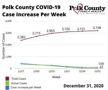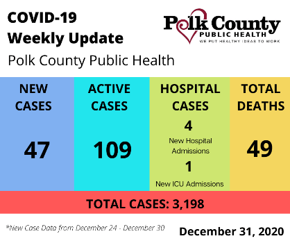 The Minnesota Department of Health released its COVID-19 Weekly Report (here) on Thursday. All information is updated through 4 p.m. on Wednesday, December 30 unless noted. Information on Polk County and the KROX listening area was pulled from the report and is below –