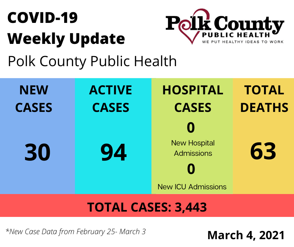The Minnesota Department of Health released its COVID-19 Weekly Report (here) on Thursday. All information is updated through 4 p.m. on Wednesday, March 3 unless noted. Information on Polk County and the KROX listening area was pulled from the report and is below –