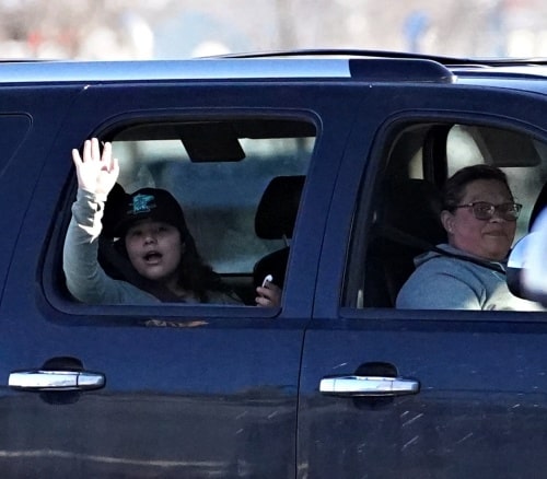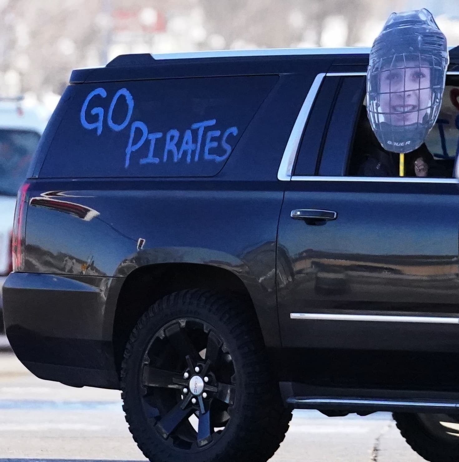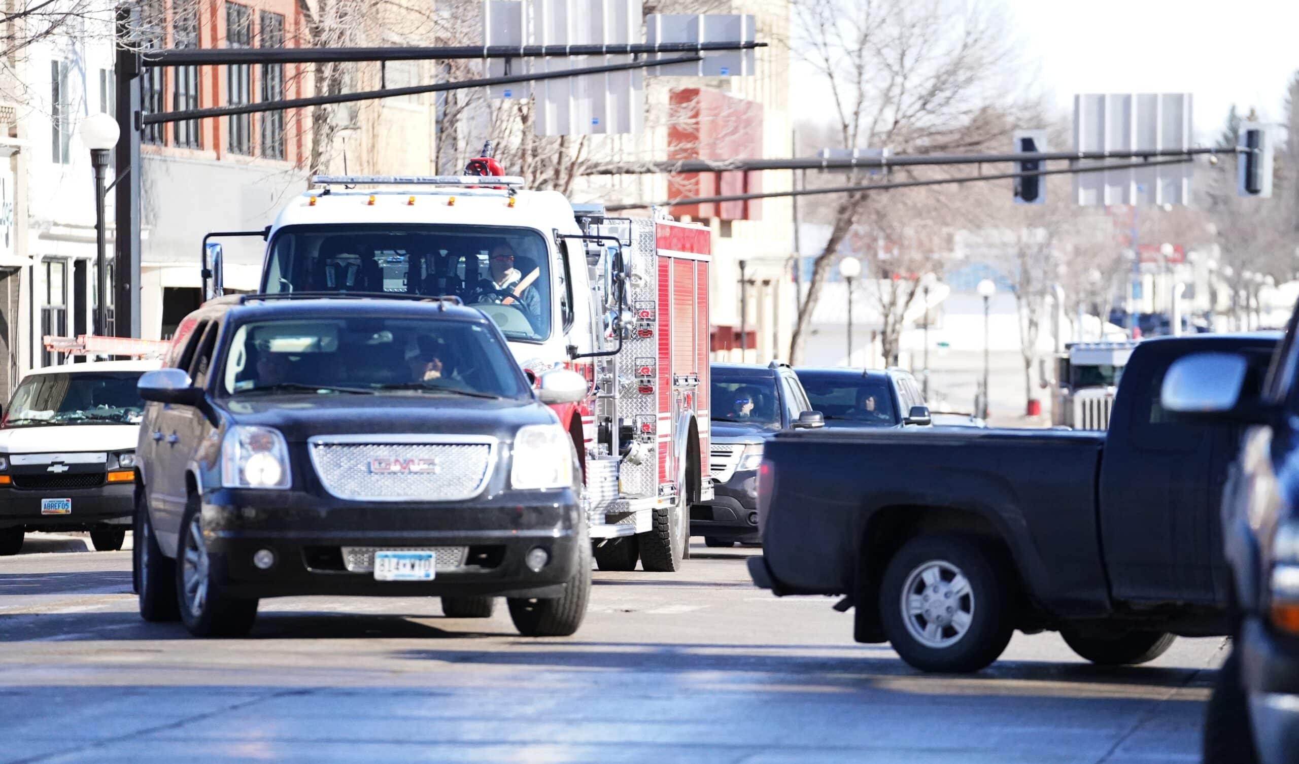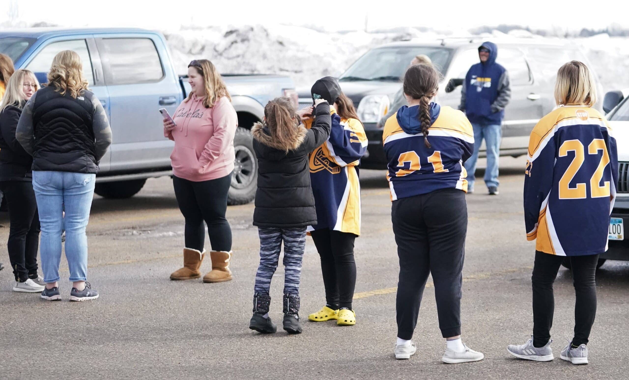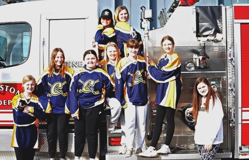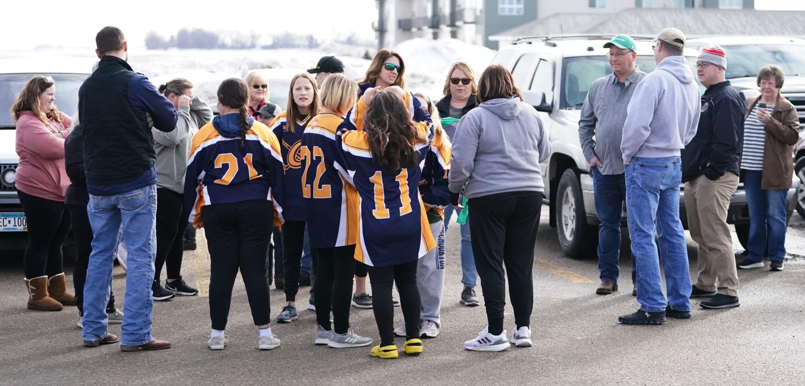 The send-off began with the team meeting in the Crookston Sports Center parking lot. After the team took pictures on the fire truck, they followed a police and fire escort through Crookston and out of town.
