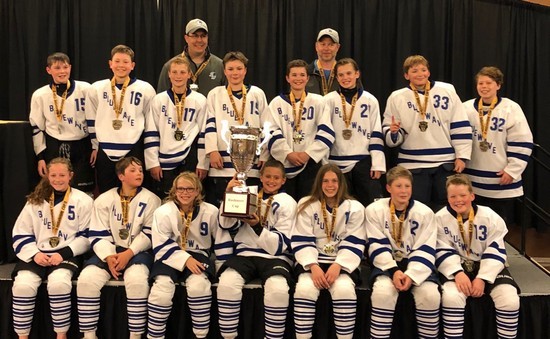 The “07 Blue Wave” a AAA youth hockey team from Crookston traveled to Rapid City, SD over the weekend to participate in the 2019 Rushmore Cup Hockey tournament. They went 4-0-1 on the weekend winning the championship game on Sunday in a 3-2 nail biter. Members of the team are Ashlyn Bailey, Isaiah Donarski, Brandon Colborn, Gavin Aakhus, Addie Fee, Garrett Fischer, Ryan Clauson, Riley Benson, Tate Hamre, Connor Maruska, Tucker Lovejoy, Greyson Ecker, Will Cymbaluk, Brady Chandler and Parker Kelly. The team is coached by former Pirate Hockey players Wes Colborn and Trent Fischer.