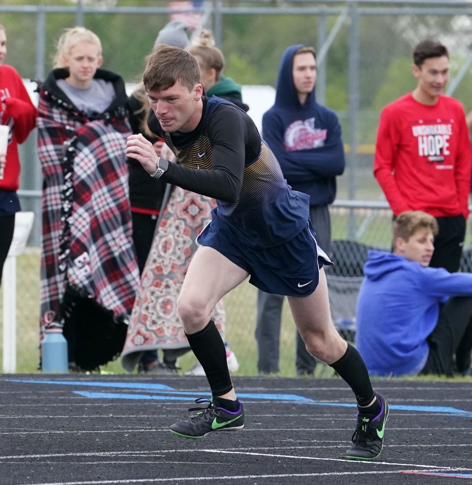 Ethan Boll ran in the first track meet of his career. “He is playing baseball and doing track and this is his first track meet,” said Coach Folkers. “He is figuring things out and had a second-place and a third-place and was on the first-place 4×100 relay.”