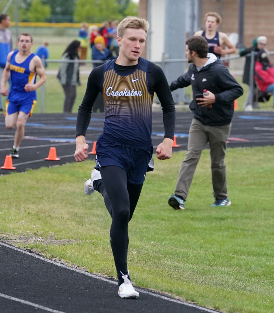 Crookston picked up some good points in the pole vault. “Andrew MacGregor and Gabe Montieth have been vaulting a little more regularly and got us some good points in the pole vault,” said Coach Folkers. “They had a great day.”