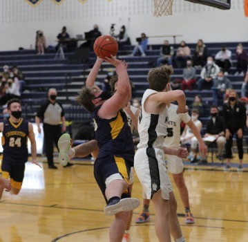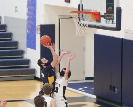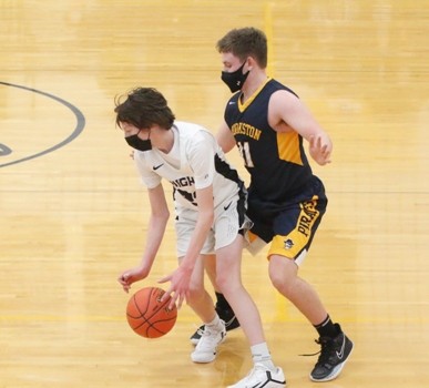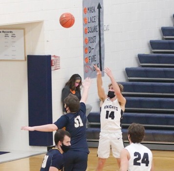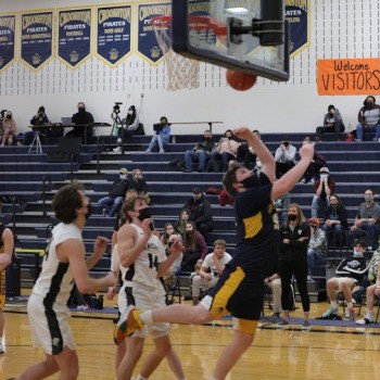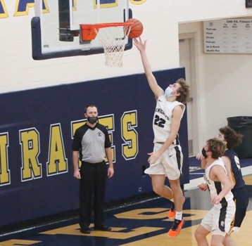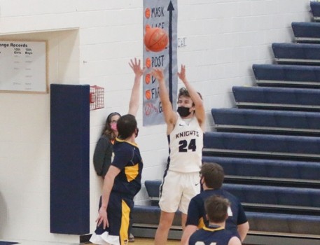 The Pirates continued their scoring run coming out of the locker room as Carter Bruggeman drove down the right side of the lane to open the second half scoring with a layup off 18 seconds into the half. The Pirates went on to score the first 16 points of the half led by six from Jack Garmen and four from Bruggeman while Brooks Butt and Tangquist each added three to take a 43-14 lead with 14:16 to play. “It helps to have a run like that anytime in a game,” said Garmen.  “We haven’t been very good on offense our first two games, so that was good to get the kinks out and get things going. Carter started dribble-driving it, getting inside to extend it and put it out of reach. We were a little more active, hands were active.” With 13:46 to play, Jory Vasek drew a shooting foul and hit both free throws to break a scoreless streak 11:08. With 10:58 to go, Aiden Rogenes would kiss a turnaround shot in the lane off the glass to cut the Pirate lead to 29 at 49-18. Rogenes, shot was the first field goal by the Knights since there was 6:54 to go in the first half, a span of 13:56. The two teams would trade baskets over the next five minutes, with the Knights never pulling closer than 28 before a Bruggeman three from the top of the key gave the Pirates a 67-32 lead with 6:00 to play. “We had more active hands in the second half,” said Garmen. “We were getting on the floor, getting to loose balls. Evan Christensen coming in late, getting on the floor for a loose ball is good to see even though it’s under a minute and the game is out of reach. Good for other kids to see that you get on the floor good things happen. He got sat on and got to go to the line with a chance to score a couple of points.”  Evan Christensen would cap the scoring for the Pirates as he was fouled and went 1-for-2 at the free-throw line with 11 seconds to play, giving the Pirates the 68-39 win. Bruggeman finished the game with 21 points, 19 of which came in the second half. “He’s really gotten better at shooting the ball,” said Garmen. “He’s a big, strong kid. When he takes it in low, if he can get the ball organized and not get it taken away, he’s tough around the basket.”