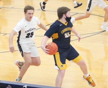 The Pirates scored the first point of the night on a free throw by Easton Tangquist and the Pirates opened on a 9-0 run over the first 3:48 seconds capped by a Jacob Miller three from the left corner. The Knights would respond with a 7-2 rapped by a pair of free throws from Ethan Evitts to pull within four at 11-7 with 11:05 to play in the half. The two teams would trade baskets over the next four minutes before Dylan Evitts scored and drew a foul on a fast break hitting his free throw for a three-point play to make it 18-14 Pirates with 6:54 to play. That would be the last field goal by the Knights until midway through the second half.  The Pirates closed the half on a 9-0 run to lead 27-14 at the break. Crookston hit just seven first-half field goals and went 10-18 at the free-throw line. “The first half kind of seesawed back and forth feeling our way through it,” said Pirates Coach Greg Garmen. “We hit some shots at the end to have a little lead heading into halftime. It didn’t feel like we shot well at the line, but we must have shot a lot of them. We probably took too many threes early. We needed to go inside more, and we jacking up threes like they were going out of style.”