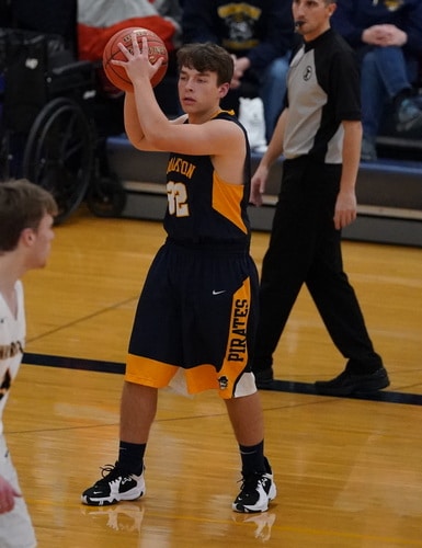 Warroad started the game on a 10-0 run with baskets from Kyle Kvarnlov and Dylan Fox followed by back-to-back three-pointers from Evan Grover. “That isn’t the start anybody wants ever,” said Pirate Coach Greg Garmen. Crookston finally got on the board a little over three minutes into the game when Ryan Abeld stole the ball and went in for a layup and that was followed by a Jacob Hesby three-pointer to get within a 10-5 deficit. The teams exchanged baskets and Warroad led 12-7 with 12:25 left. It was at this point in the game that Warroad blew the game open by going on an 18-1 run, let by three straight three-pointers from Gage Thompson. “We were daring him to shoot and he kept making them,” said Coach Garmen.. After a Ryan Abeld free throw, Thompson buried another three-pointer and then had a steal for a layup. Warroad continued the run with two free throws from Grover and two more from John Davis for a 30-8 lead with 8:20 left in the half. Hayden Michaelson stopped the run with a three-pointer only to have Warroad go on a 17-0 run behind 12 points from Dylan Fox for a 47-11 lead. Isaac Thomforde, who started his first-ever varsity game, tried to get the Pirates going with a free throw and a three-pointer, but Warroad took a 53-15 lead into halftime. “Fox has done it for years and they have a good point guard with Grover,” said Coach Garmen. “We needed to rebound and we had 13 turnovers in the half. It was a tough half and we made a lot of bad mistakes. Give credit to Warroad for taking us out of rhythm.”