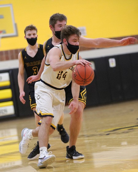 Trailing 22-10, Crookston’s Jacob Hesby made a three-pointer from the sideline, but Warroad ended the half on an 11-1 run to take a 33-14 lead into halftime.  “They turned us over and made a bunch, and when we didn’t turn it over we couldn’t make a shot and before you know it they were up 20,” said Pirate Coach Greg Garmen. “They got some run-outs on us because we weren’t getting back like we need to.  We turned it over 10 times in the first half and that didn’t help.”