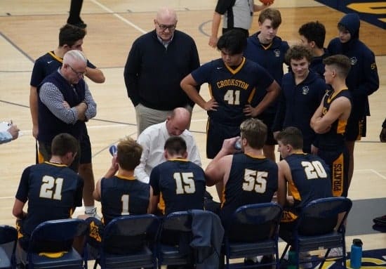 The game started as a three-point shooting contest, with Fosston’s Kelton Gray and Hudson Boushee making back-to-back three-pointers. Crookston responded with a Tyler Michaelson three before Fosston’s Ryne Duppong buried a long bomb, and the Greyhounds led 9-3 two minutes into the game.