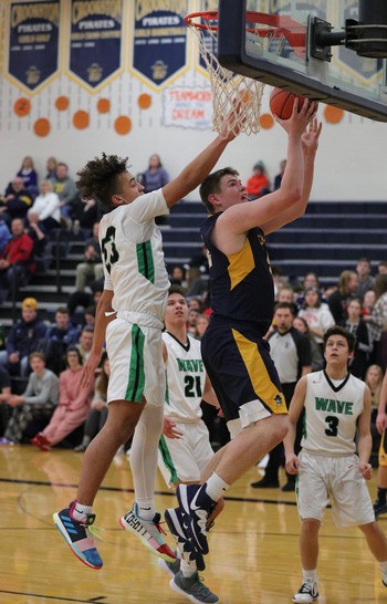 Crookston started the game with a pair of technical free-throws after East Grand Forks’ Nathan Willett dunked during warm-ups. Caden Osborn split the two free-throws, and Crookston began with the ball and 1-0 lead before the game started. It would be the Pirates’ only lead of the night. Willett threw down a two-handed dunk that couldn’t be penalized, giving the Green Wave a 2-1 lead. Sam Votava brought down an offensive rebound on EGF’s next possession and finished with a lay-up giving East Side a 4-1 lead. Caden Osborn tied the game with a three-pointer before Danny Willett regained the lead for the Green Wave with a steal and another dunk. Julian Benson scored the first of his 49 points with a lay-up through a foul extending the visitors’ lead to 10-4. Trailing 22-14, Jack Garmen made a three-pointer bringing Crookston within 22-16. Later in the half, Julian Benson scored another and-one adding his free-throw extending East Grand Forks’ lead to 39-31. Jack Garmen started a 9-1 run bringing the Pirates within 41-39. The Green Wave closed the half on an 8-0 run taking a 49-39 lead into halftime. “We were right there,” said Crookston head coach Greg Garmen. “We had the technical to start the game and didn’t capitalize. We made one (free-throw), and then I look up, and it’s 1-4. The last-minute, they had eight unanswered, and that didn’t help us. We weathered the storm with some foul trouble. We knew they were going to pressure us the whole time, and we didn’t do a good job handling that. The 8-0 run certainly took the wind out of our sails. We had a little momentum going, and then that happens. It was always going to be tough overcoming ten (point deficit).”