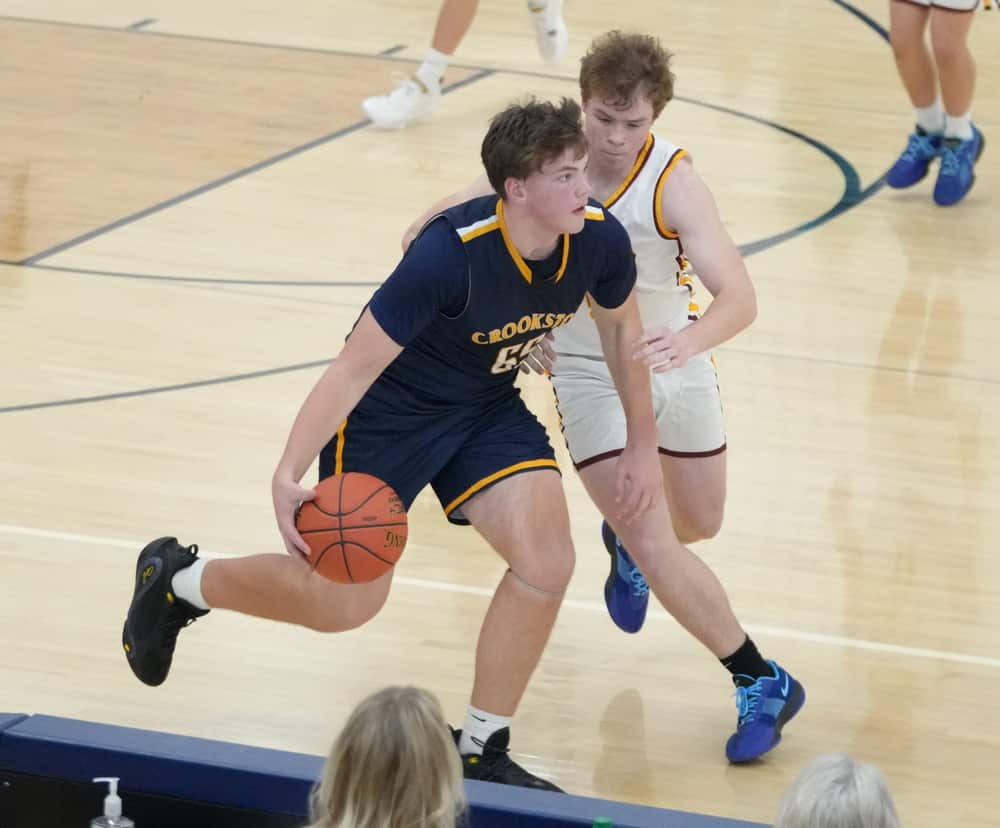 Crookston had a great start to the game, and it was a sign of things to come for most of the game. The Pirates started the game with energy, making shots and executing plays. After Bagley scored the first basket of the game, Crookston responded with eight straight points after back-to-back three-pointers from Reggie Winjum and Carter Fee, forcing a Bagley timeout. After the timeout, Crookston’s Nolan Johnson scored for an 8-2 lead. Bagley made two free throws before Crookston answered with seven more points behind baskets from Winjum and Johnson and a three-pointer from Fee for a 15-4 lead five minutes into the game.