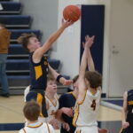 The back-and-forth battle continued in the second half for a while as Bagley’s Thompson scored the first basket of the half before Crookston’s Johnson had a basket in the paint, and Fee buried a three-pointer for a 37-29 lead. Bagley countered with five points before Crookston answered with a 10-0 run with five points apiece from Winjum and Johnson for a 47-33 lead. After a Bagley basket, Crookston’s Fee made two free throws, and Winjum added a basket for a 51-35 lead, the biggest lead of the game with 11:26 to go. Trailing 54-38, Bagley went on a 10-2 run with Ethan Proulx scoring five of the points to get the deficit down to single-digits at 54-45. Crookston kept the lead around 10 points, and after a Beau Smith basket with 3:25 left in the game, Crookston led 66-57. Crookston had some bad shots and turnovers over the next three minutes, and Bagley scored nine straight points to tie the game 66-66. Crookston’s Smith made a basket before Bagley’s Ethan Rud scored in the paint, and Thompson made a three-pointer for a 71-68 Flyer lead, the first Bagley lead of the game with 43 seconds remaining in regulation. The Pirates’ Johnson had an offensive rebound and putback before Bagley made one free throw, giving them a 72-70 lead. After Crookston missed a shot, Bagley’s Thompson made a free throw for a 73-70 lead with 13 seconds left. Crookston got the ball to Fee, who made his fifth three-pointer to tie the game at 73-73 with 4.2 seconds left. Bagley tried a half-court shot, and it was short, and the game was going to overtime.