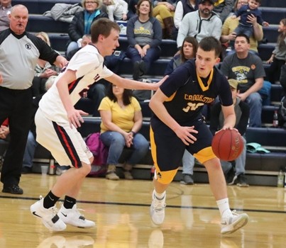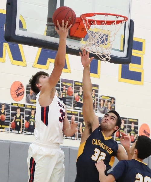 Fertile-Beltrami had a great start to the game when they scored the first eight points with Dylan Pearce scoring six and Andrew Wadsworth added a basket for an 8-0 lead over two minutes into the game. “We have to have a better start,” said Pirate Coach Greg Garmen. “I thought we were flat coming out of the gates and handle the ball better.” Crookston’s Nick Garmen scored the first Pirate points of the game to spark a 6-2 run with Jaden Lubarski and Caden Osborn scoring two points each to get within a 10-6 deficit. Fertile-Beltrami answered with four straight points, two apiece from Wadsworth and Nolan Pinske for a 14-6 lead and a short time later, the Falcon’s Pearce picked up his second foul and had to sit for the final 12:22 of the half. Crookston wasn’t able to take advantage of the absence of Pearce and actually, Fertile-Beltrami built a 20-9 lead halfway through the first half. Crookston started making some shots with Jaden Lubarski scoring off an offensive rebound and they added three-pointers from Osborn and Walker Winjum made a three-pointer as the halftime buzzer sounded and Fertile-Beltrami’s lead was 27-22 at halftime. “That helped to have something positive going into halftime,” said Pirate Coach Greg Garmen.
