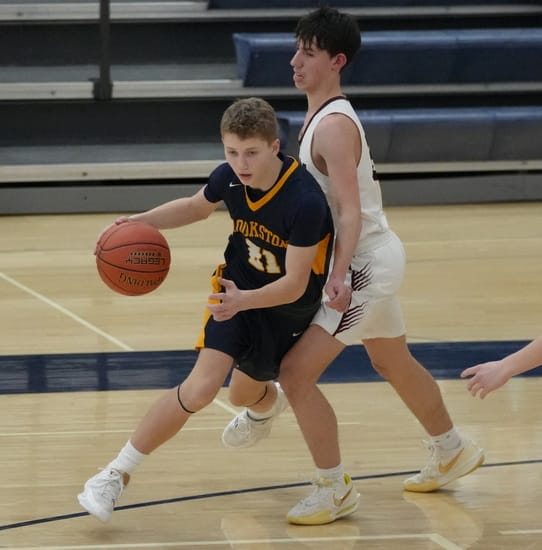 Crookston’s Reggie Winjum only needed eight points to reach 1,000 career points, and he had a great start with back-to-back steals for layups to give the Pirates a 4-0 lead to start the game. Fosston answered with a Jake Howard three-pointer, and the back-and-forth first-half battle was underway. The teams were tied at seven before Fosston’s Gavin Curfman scored, but Crookston’s Carter Fee answered with a three-pointer for a 10-9 lead. Fosston’s Darien Holzer scored five straight points for a 14-10 lead. Crookston’s Winjum made a three-pointer from the corner for his 10th point of the game to score the 1,002nd point of his career as the crowd cheered, and the game was stopped to acknowledge the milestone. When play resumed, Winjum got his third steal of the game and went in for a layup, and the Pirates led 15-14 with 9:15 left in the half. Fosston built a 25-19 lead when Crookston’s Fee made a three-pointer, and Winjum added a basket to bring the Pirates within a 25-24 deficit. Fosston made one free throw before Fee made another three-pointer. Fosston’s Howard answered with a three-pointer of his own, and Curfman made two free throws for a 31-27 lead with 3:14 to go in the half. Crookston dominated the final three minutes as Beau Smith made a basket and Winjum followed with six straight points, and the Pirates took a 35-31 lead going into halftime after ending it on an 8-0 run.