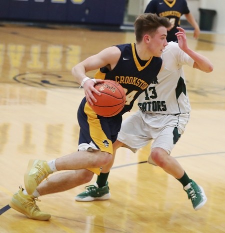 Crookston came out stronger in the second half with a basket and two free throws by Osborn, but BGMR answered with 10-2 run to open up a 61-24 lead three minutes into the half. “We didn’t have a The Gators continued their domination and Crookston’s Carter Bruggeman injured his ankle and had to miss the rest of the game and a few minutes later Caden Osborn stole the ball and went in for a layup and scored, but when he landed he hit the floor with a knee injury (the extent of the injury is unknown and he will be evaluated later) with Crookston trailing 65-33. “We aren’t sure right now (with the injuries) and we will have to wait and see what happens,” said Coach Garmen. “They don’t help and we will keep our fingers crossed, but it could change our complexion of the team if we get bad news.” The final nine minutes of the game were running time and BGMR cruised to an 87-35 victory. “It wasn’t a good start and it was a worse finish, especially with the injuries,” said Coach Garmen. “The kids need to come out ready to go and make sure we are conscious about having a good start. BGMR is a good team, they defend well and they shot well tonight.”