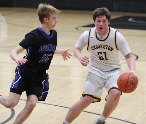 The teams exchanged baskets for the first five minutes of the second half and Red Lake County led 44-42 six minutes into the half. It seemed every time Crookston cut the deficit to a possession Red Lake County would answer with big plays. “We came out strong to start the second half, I thought,” said Pirate Coach Greg Garmen. “They started playing better defense and that caused some problems for us.” After a Carter Bruggeman basket to get the Pirates within the two-point deficit with an Isaiah Olson three-point play, a Trent Goulet three-pointer and an Eric Gieseke three-pointer to cap a 9-0 run for a 53-42 lead with 11:22 left in the game. “Derek Peterson and Eric took over and had some nice assists and we made some shots,” said Rebel Coach Philion. “We worked the ball around and we picked up our defensive pressure and that was good to see and sign of a good team.” That was the run that sparked the Rebels and they slowly pulled away the rest of the way by driving to the basket, nice passing and solid defense to cruise to an 81-64 victory. “Crookston played pretty well so it was a nice win for us,” said Rebel Coach Philion. Crookston Coach Greg Garmen said they saw some good things. “We saw some signs and played well at times,” said Garmen. “It has been our story all season long, we can’t play the full game. We are getting there and hopefully, we will keep building.”