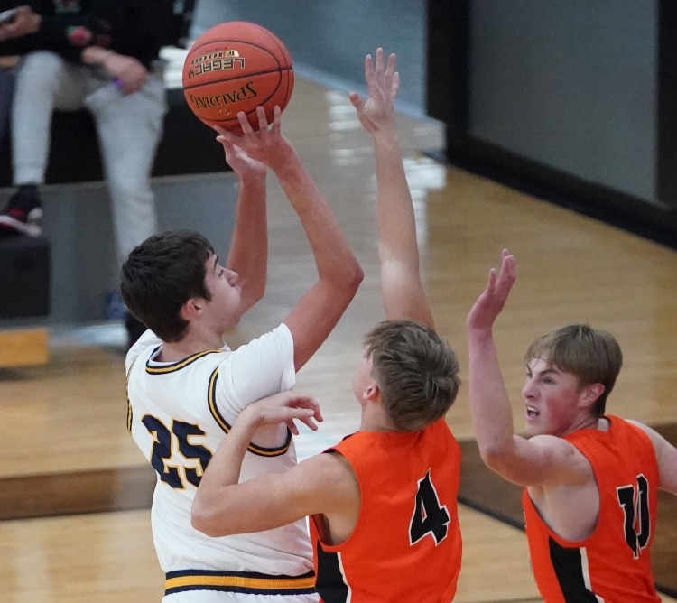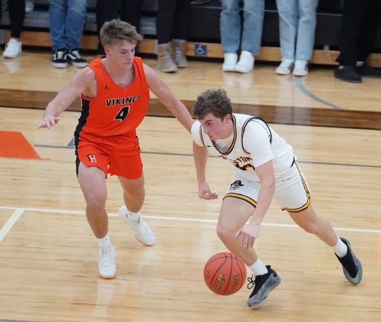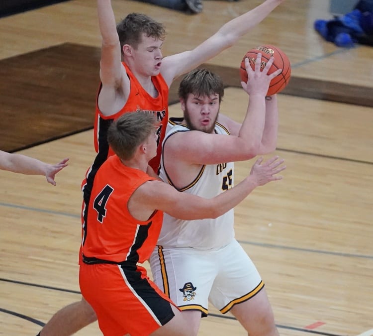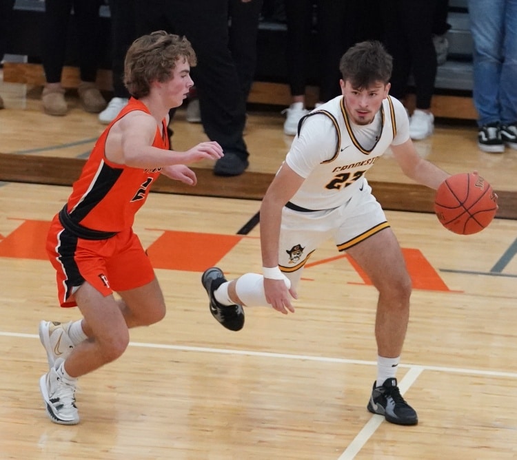 Pelican Rapids started the game strong as they went on an 8-2 run with the lone Crookston basket coming from Reggie Winjum. Crookston settled down and had an answer as Tyler Michaelson made two free throws and Jack Everett made a three-pointer to bring the Pirates within an 8-7 deficit over three minutes into the game. Pelican Rapids answered with a basket before Crookston’s Hunter Nicholas came off the bench and scored five straight points to give the Pirates a 12-10 lead with 12:13 left in the half. Pelican Rapids answered with a basket before Rylan Lubarski made a free throw for a 13-12 lead. After a Viking basket, Crookston’s Nicholas scored inside for a 15-14 lead with 10 minutes left in the half. Pelican Rapids started to wear down the Pirates with their in-your-face full-court pressure and outscored Crookston 23-9 in the final nine minutes of the half to take a 37-24 into halftime.