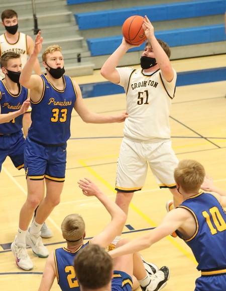 The Crookston Pirate Boys Basketball was outmatched by a bigger, and quicker, Thief River Falls Prowler team in a 68-34 loss at the Thief River Falls Lincoln High School gymnasium.