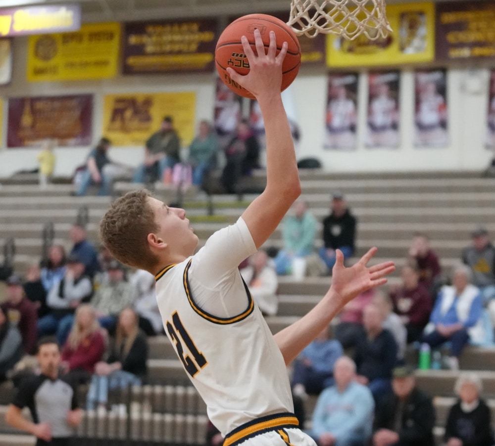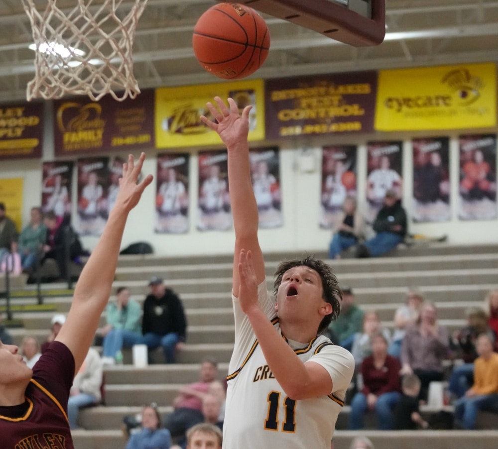 Hawley started the game on a 13-2 run behind the red-hot shooting of Tucker Anderson, who made three three-pointers. Crookston responded with six points, with Reggie Winjum scoring four, while Nolan Cassavant added a basket to get within a 13-8 deficit seven minutes into the game. Hawley countered with an 11-2 run for a 24-10 lead with 7:36 left in the half. Crookston figured out the Hawley zone and started to get some points as Carter Fee made a three-pointer, and Cassavant added a basket to get within a 24-15 deficit. Hawley’s Jaxon Schenck responded with two baskets before Crookston’s Beau Smith made a three-pointer. The back-and-forth continued as the Pirates trailed 35-23 when Smith made another three-pointer, and Winjum added two free throws to bring Crookston within a 35-28 deficit. Hawley made two free throws with 39 seconds left in the half and took a 37-28 lead at halftime.
