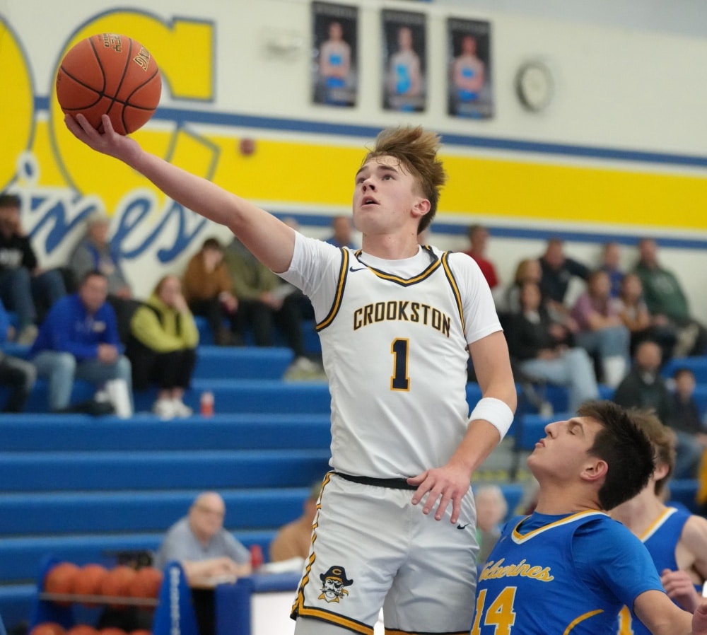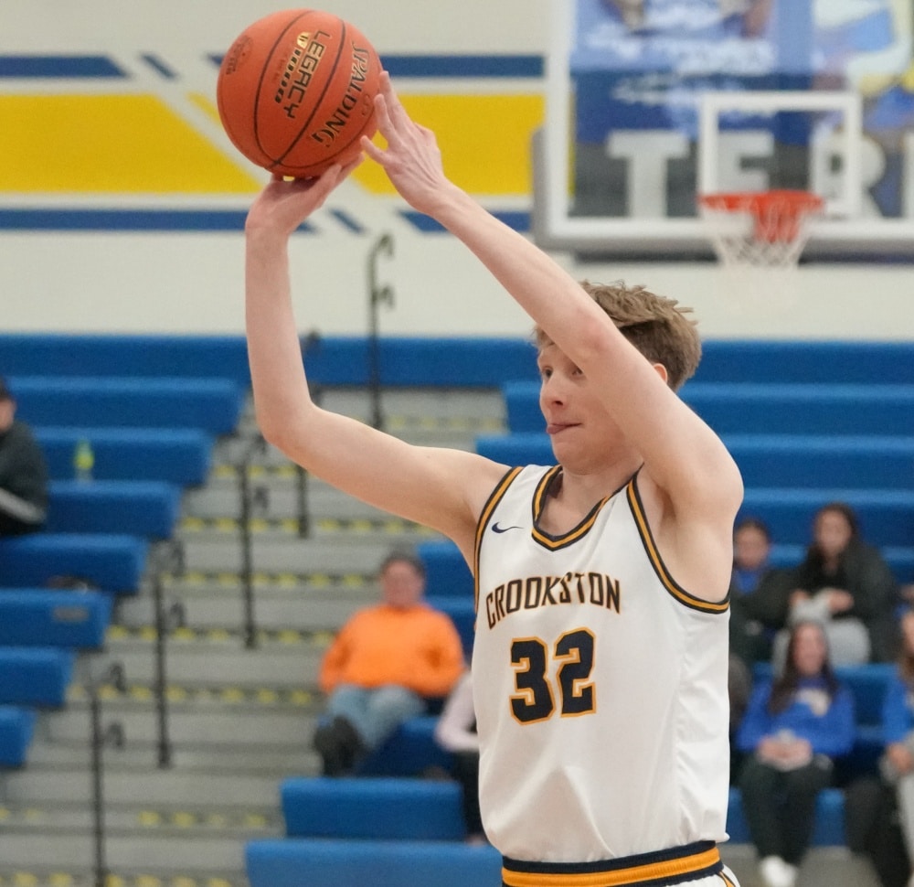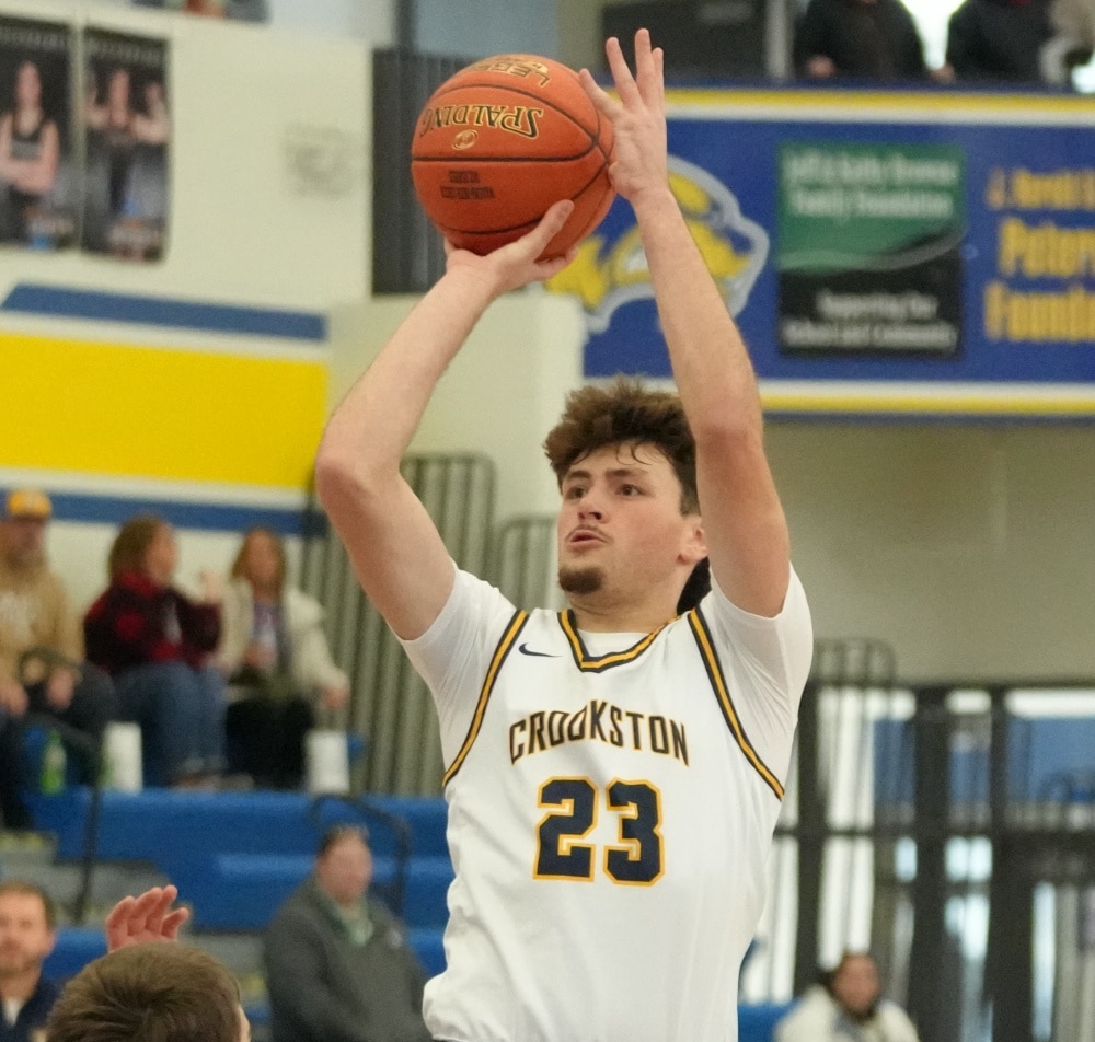 WDC bounced back with baskets from Leo Petrowski and Hunter Sewer for a 10-8 Wolverine lead. Crookston answered with another run as Fee made a pull-up jumper, Nolan Johnson stole the ball and fired a pass down the full length of the quarter to a streaking Winjum, who laid it in for two more points for a 12-10 lead. The game was tied at 12 before WDC took an 18-14 lead with seven minutes left in the half. Crookston’s Beau Smith rattled home a three-pointer from the left wing. The teams exchanged points before Crookston’s Nolan Cassvant and Winjum had back-to-back baskets to tie the game at 23. WDC’s Parker made a three-pointer before Cassavant banked home a three-pointer from the top of the key to tie the game at 26. WDC finished the half with a 30-29 lead at halftime.