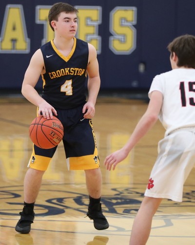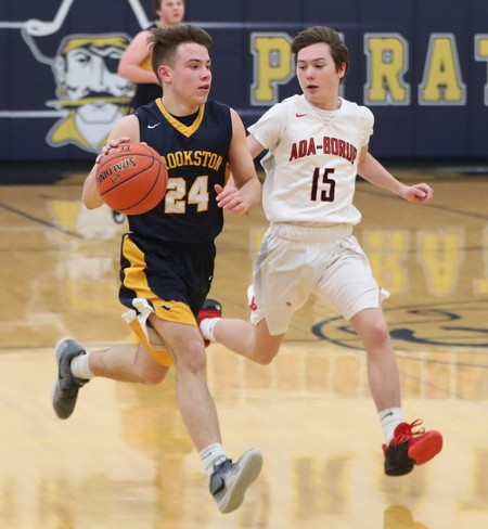 Ada-Borup started the game strong and took a 35-8 lead a little over halfway through the first half. Crookston settled in for a few minutes when they went on a 5-3 “run” and trailed 38-13. Ada-Borup put any thoughts of a Crookston come back to bed when they went on a 16-0 run and took a 54-13 lead. Crookston’s Jack Garmen stopped the run with a three-pointer with 40 seconds left in the half, but Ada-Borup took a 56-15 lead into halftime. “I don’t know what to say. They are very good and make you play faster and we didn’t shoot well because of their defense,” said Pirate Coach Greg Garmen. “We had 16 turnovers in the first half, but Ada-Borup is a very good team.”