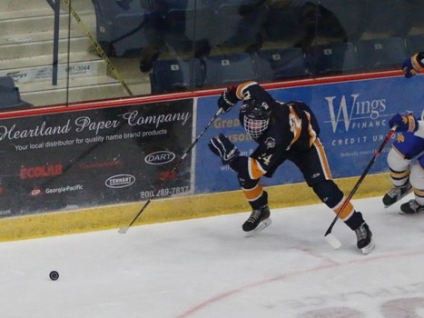 The Prowlers had the first six shots on goal but were unable to capitalize until midway through the first period. Brendan Bottom had a shot stopped picked up his own rebound and took it to the left half-wall. Bottem then walked the puck across the slot before sliding a backhand pass to Morgan Rude at the bottom of the left circle and he pushed across the goal line for a 1-0 lead with 9:00 minutes to play. Killing a penalty, the Pirates would get whistled for covering the puck in the blue paint leading to a penalty shot. Zachary Dalzell skated in and tried to go backhand in tight but Pirate goaltender Jaren Bailey kicked out the right leg to make the save. “Jaren played a heck of a game,” said Pirates Coach Josh Hardy. “He was all over the place out there. Made a big save on the penalty shot. Really proud of him. He played a heck of a game and really battled for us. That’s all you can ask at this point.” Still, on the penalty kill, the Pirates would get the equalizer when Alex Longoria knocked the puck free at the blue line and then won the race to the puck. He carried down the right-wing before ripping a wrist shot under the goaltender’s stick arm to tie the game 1-1 with 5:12 to go. “Shoot the puck, good things happen,” said Hardy. “He picked a corner wide and just missed the post as it went in. Al is having a nice year and working hard for us. One of our goals every game is to score a special team’s goal and to get the shorty there I thought was a momentum boost for us.” The Prowlers outshot the Pirates 17-8 in the first period.
