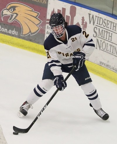 Crookston started a little slow offensively and only had a couple shots on goal in the first five minutes of the game. It was about the halfway point of the first period that the boys started to gel and attack the Northern Lakes zone and it paid off with 7:28 left in the first period when Noah Kiel scored the first goal of the game to give the Pirates a 1-0 lead. The goal was Kiel’s first of his varsity career. “The first few minutes of the game it seemed like it was a feeling out time and we weren’t getting many opportunities,” said Pirate Coach Hardy. “Noah gets his first varsity goal and he came off the wall and Jack Doda had a nice screen in front of the net.” 64 seconds later Crookston added another goal when Jack Doda got a rebound and stuffed the puck in the net to give the Pirates a 2-0 lead. “Jake Anderson had a nice shot on net and it actually went off the pipe,” said Coach Hardy. “Jack was in front of the net and banged it home.” The Pirates added their third goal of the period when Eric Delorme scored with 2:37 left in the period and Crookston took a 3-0 lead into the first intermission. “Eric continues to play well for use. We were able to get on the board three times in the period which was nice,” said Coach Hardy. “It was hard to be too upset, but I thought we didn’t play very well on the defensive end.”
