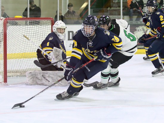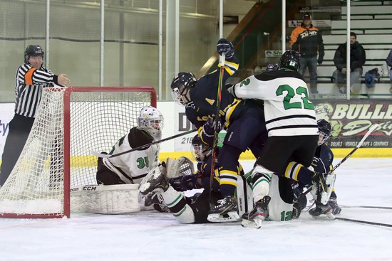 With the clock running in the third period, the Green Wave would add two more goals before the final horn. The first came with seconds to go in a five-minute major against the Pirates when Mason Poolman batted home a rebound to complete his hat trick, making it 9-1 with 12:40 to play. Tanner Lubinski would add a goal with 55 seconds to play shoving the puck inside the left post to make it 10-1. The Green Wave outshot the Pirates 10-1 in the third. The Pirates spent about seven minutes on the ice following the game, chatting and hugging. And Coach Hardy talked after the game about how this team has been close, like family, maybe more than any team he’s coached. “I think that’s maybe the big team about being in smalltown too,” said Hardy. “These guys grow up together, they’ve been playing together since they were little tykes. That’s a real family and brotherhood of guys there. It was emotional in the locker room. You might play football from seventh-grade on, but you play hockey since they were four or five years old. It’s a big part of their lives gone now, and that is a lot of emotion tied to that.”