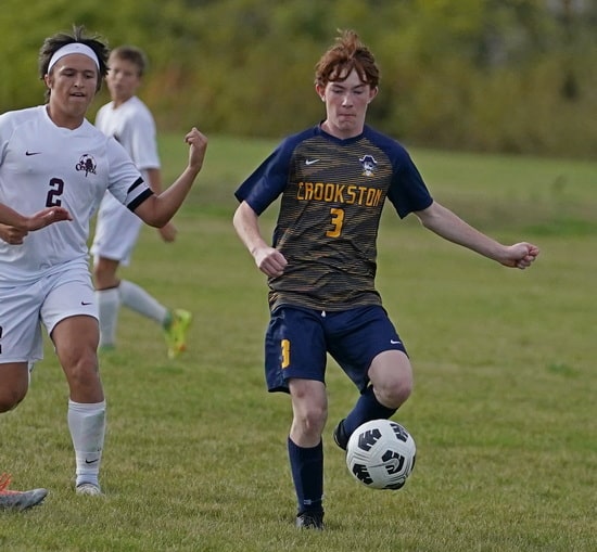 Crookston was putting some early pressure on the Knight defense from the start, and after eight minutes, Crookston was finally able to break through after a nice pass, and Caden Boike scored just shy of nine minutes into the game. “Lucas Miller had a great pass to Caden, who slipped by the defense and had a shot across the goal into the upper right side.”
