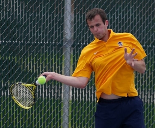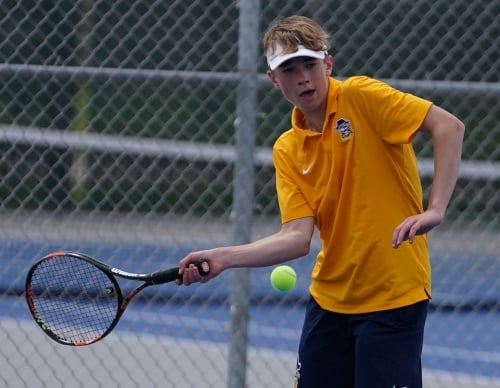 The next match complete was at second doubles, with Nathan Kelly and Kaleb Armstrong earning another three-set victory. Â Kelly and Armstrong came out a little slow and lost the first set 6-3. Â They started to play better in the second set and won 6-3, forcing a third set tie-breaker. Â In the third set, the Pirates won 10-6 for a 5-1 lead. “They came out a little slow, to say the least,” said Coach Janorschke. “But they recovered and played well the rest of the way and some of it was getting used to playing with each other again.”