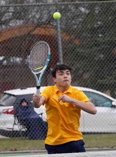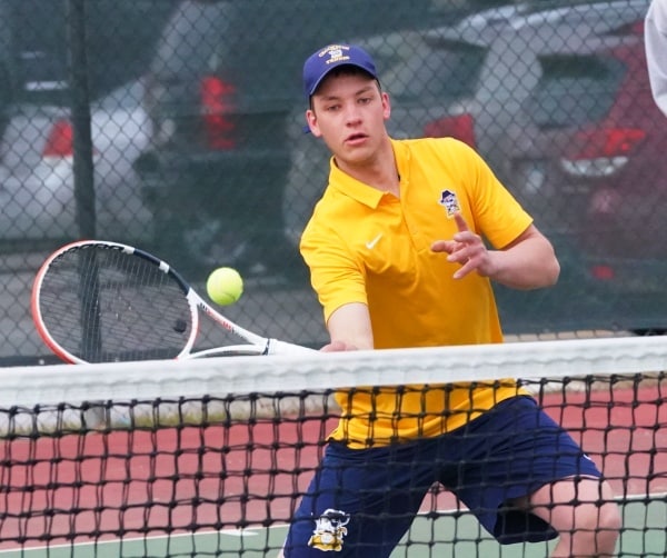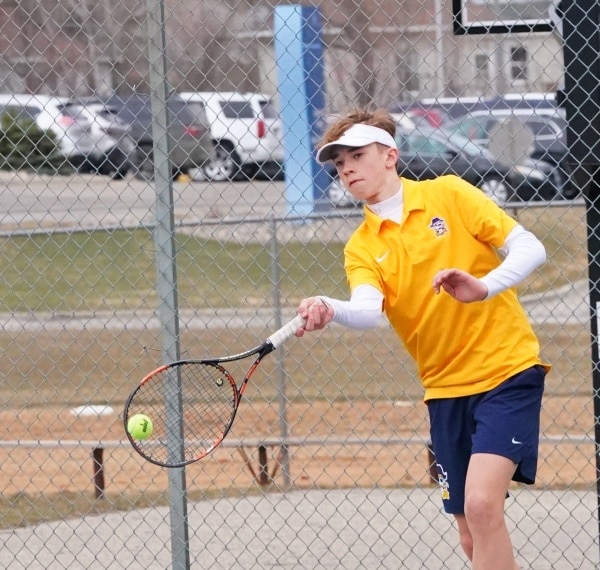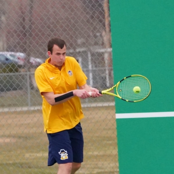 DL got out in front with an early win at #1 singles as Joey Brule was defeated 6-0, 6-0. Reggie Winjum soon tied the match at 1-1 having no problems at the #4 singles spot with an impressive 6-0, 6-0 win of his own.