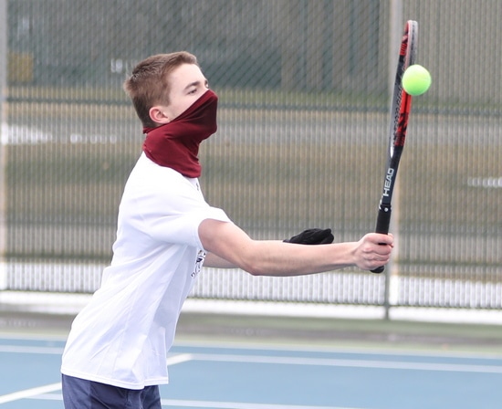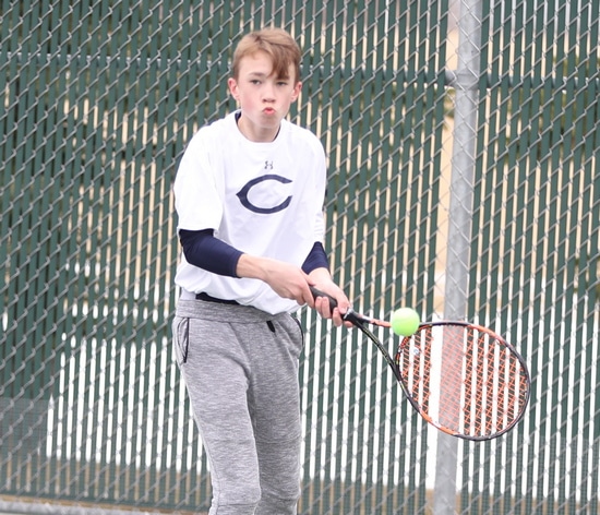 Erik Coauette won his second singles match 7-6 (7-1), 6-3.  “Awesome for Erik to come out and get the win at second singles,” said Coach Brekken. “He has played a couple varsity matches at third doubles and he has made tremendous improvement over the past two years and it was good to see him come out and get a good tight win for us.”
