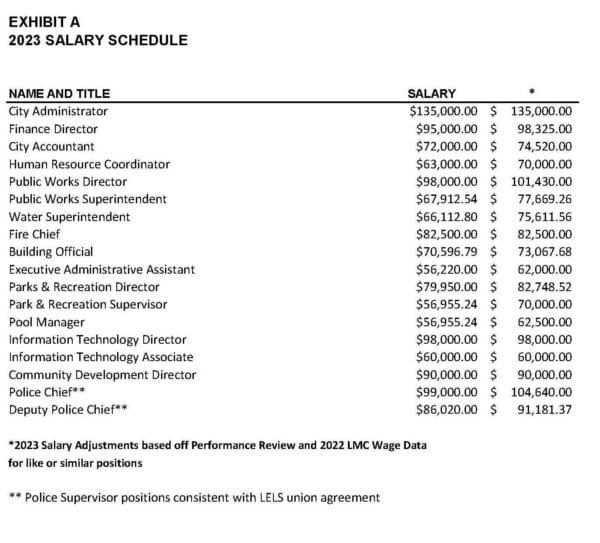The salary changes are due to the results of the League of Minnesota Cities Wage and Compensation Package study they used to help with the tax levy at the end of 2022.