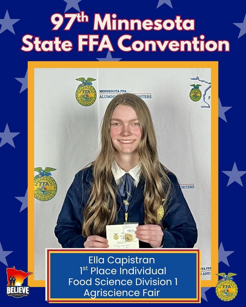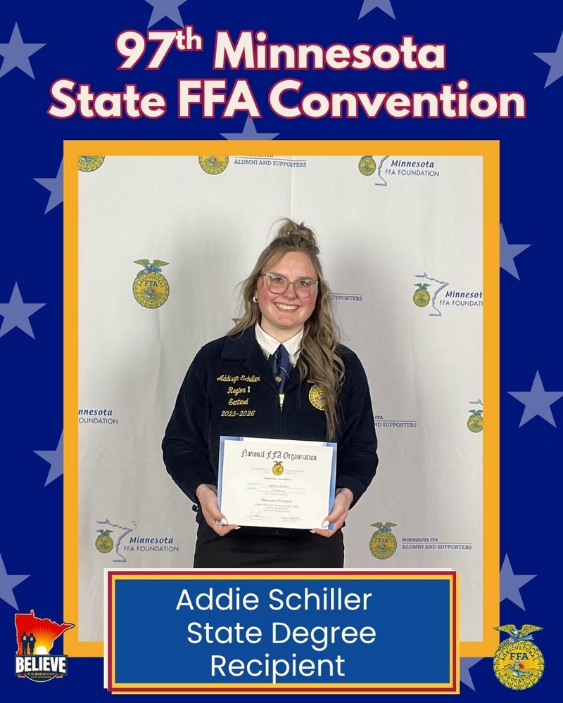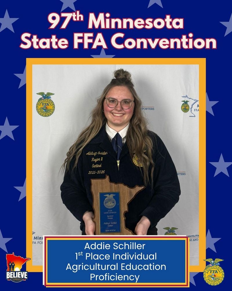 Addie Schiller was the state Proficiency winner in Agricultural Education. She will be sending it to nationals later this year.