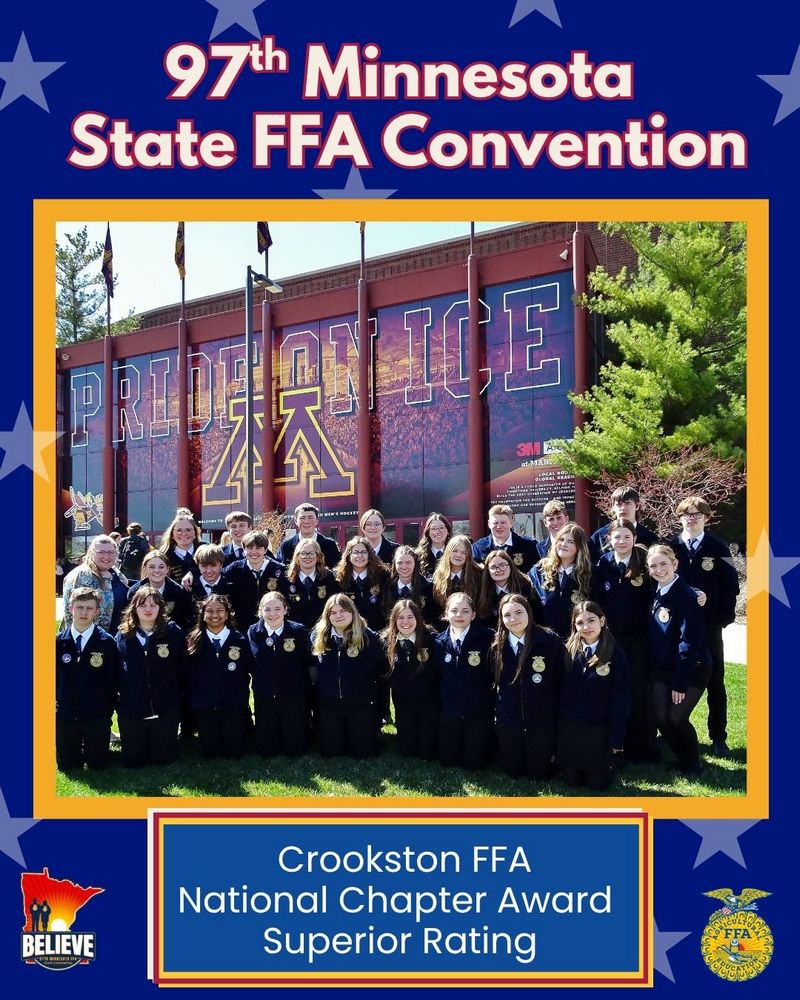 As a chapter, Crookston FFA was recognized in the National Chapter category as a superior ranked chapter. Crookston FFA was also recognized for participating in the Ag Literacy challenge.