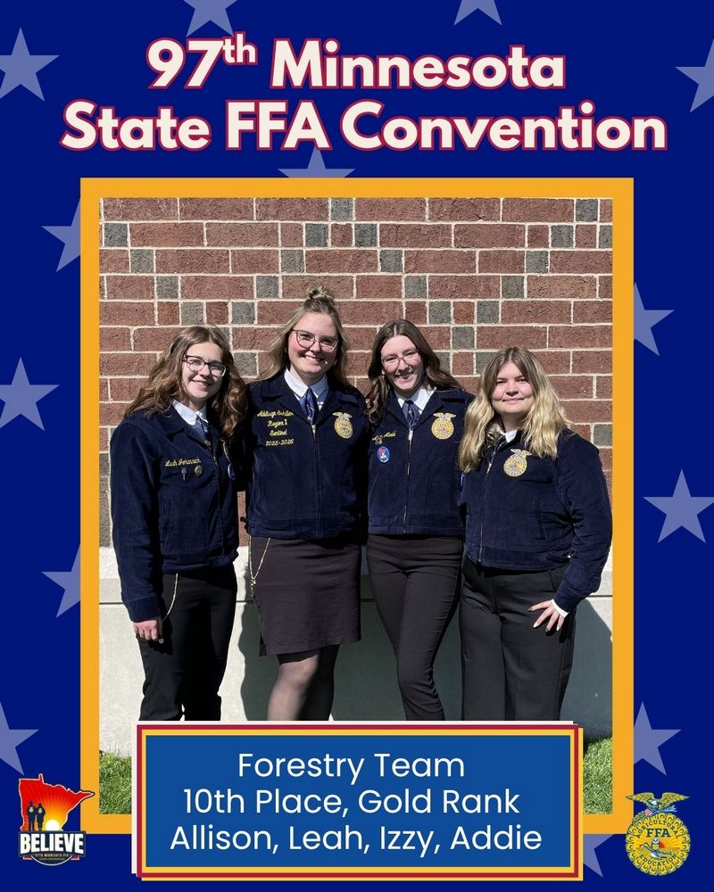 The Forestry team placed 10th (out of 42 teams) and ranked gold. Leah Johanneck led the team by placing 7th individually (out of 157 competitors) and ranked gold. Allison Abeld, Addie Schiller, and Izzy Pahlen were the other team members ranking silver.