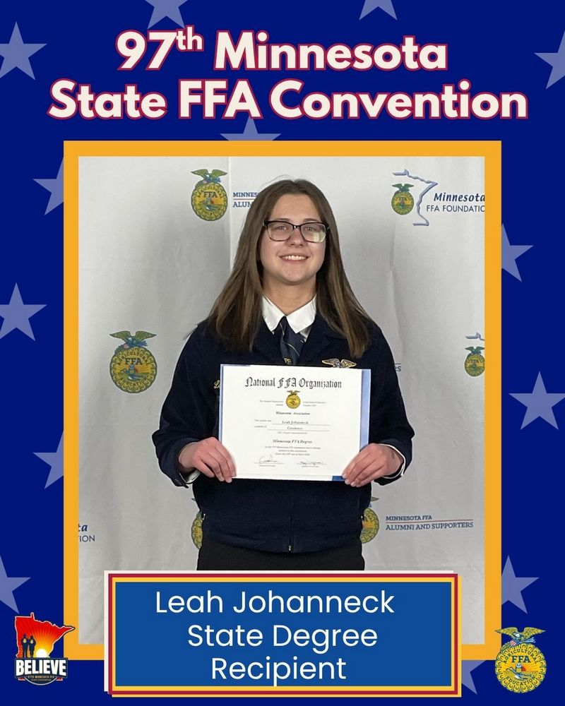 Leah Johanneck and Addie Schiller were awarded the highest degree that Minnesota can bestow upon a member. They both received their State Degree.