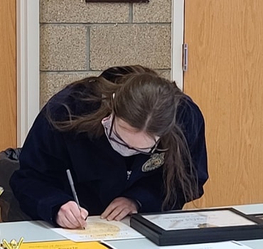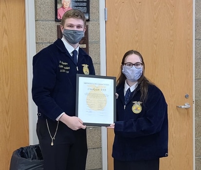That isn’t all, the Chapter also completed a service project, and received completed the FFA Chapter Charter last week. “We’ve been collecting for the Care and Share – hygiene products as well as food,” said Rupprecht. “We had all five state officers as well as a national officer up here to essentially present us with our charter because we’re a brand-new school.”