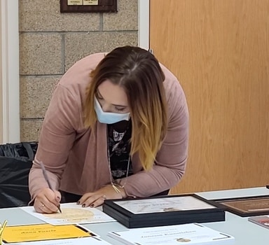 The state officers attending the charter signing included three students at the University of Minnesota Crookston – Ben Olander (President), Elaina Knott (Treasurer), Laney Swiers (Sentinel). The other officers in attendance were Emilee Xayanourom (Vice-President) and Anna Euerle (Reporter). National FFA Southern Region Vice-President Artha Jonassaint also attended the chapter’s charter signing.