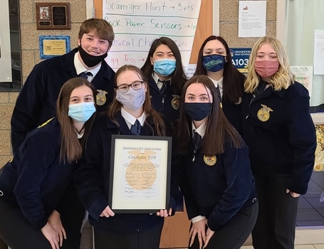 The Chapter is also competing in the virtual state convention. “State convention would normally be this week, so we would travel down to the cities for three sleep-deprived days,” said Rupprecht. “Due to COVID, everything is virtual. We had the Conduct of Chapter meetings which I like to call baby parliamentary procedure. Victoria Proulx gave her prepared public speech on processed foods. We’re doing the food science contest. And final rounds for speaking and leadership development events. This week is all of our big contests like dairy evaluation, livestock evaluation, small animals, and so on.”