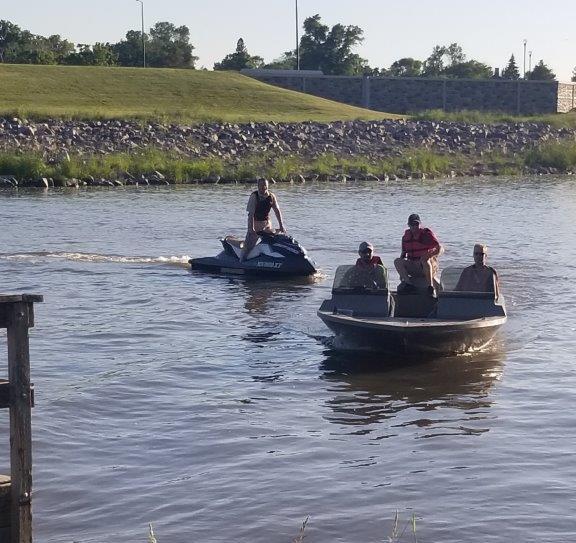 The Crookston Fire Department and Polk County Sheriff’s department (PCSO teamed up to do some river training exercises on Thursday night on the Red Lake River. “It was a very successful opportunity to work together.  We were able to use the city jet boat for operations along with PCSO jet skis and side sonar boat,” said Crookston Fire Fighter Justin Johnson (who also sent us the pictures).