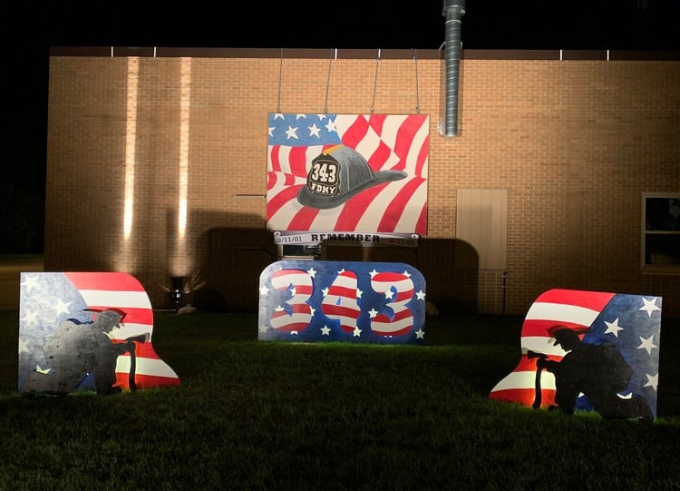 This year’s displays include new murals and cutouts of firefighters taking a knee to honor the fallen victims on 9-11. The number 343 is also being displayed to honor the fallen firefighters who gave their lives doing their job, as well as 343 American flags that wrap around the fire department.