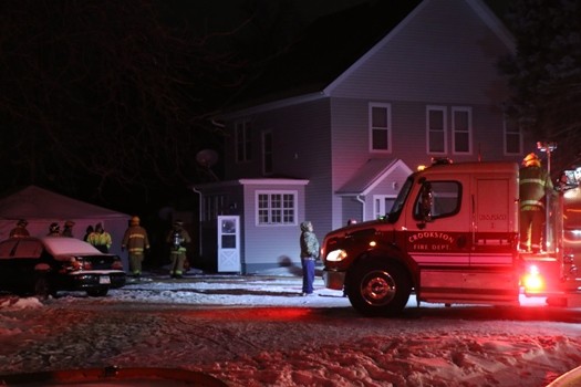 Crookston Firefighter Bob Magsam said the fire spread onto multiple floors but that the firefighters felt the fire was knocked down as of 8:40 p.m. “Upon arrival, we confirmed there was a working fire in the basement area. Through our firefighting efforts, we discovered the fire had extended to the main floor,” said Magsam. “Right now, we feel like we have the fire knocked down. But we’re looking for further extension (of the fire) and removing some materials from the home to prevent extension.”