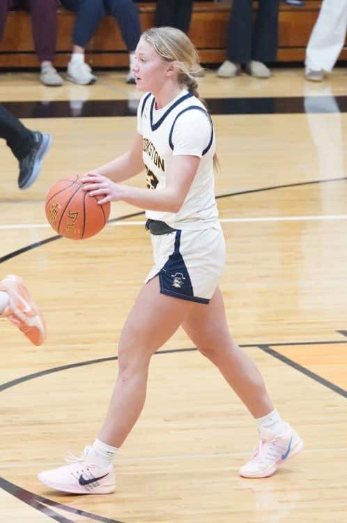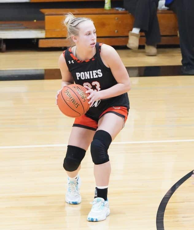 The first half was all defense. After 6 minutes of play, the game was tied 4-4 with both Pirate buckets coming from Chloe Boll. WAO finally got a big shot from Macey Boe, making her first of two three-pointers in the half, and then a bucket from Miela Pierce gave WAO a 9-4 lead. Crookston got a bucket from Brooklyn Waldal to cut the lead back down to three, and then teams alternated buckets until the Ponies had a 12-9 lead with 3 minutes to go. From there, WAO went on their best offensive run of the game, ending the half on a 9-2 run, including two 3-pointers from Annie Peterson, thus allowing the Ponies to take a 21-11 lead into the half.