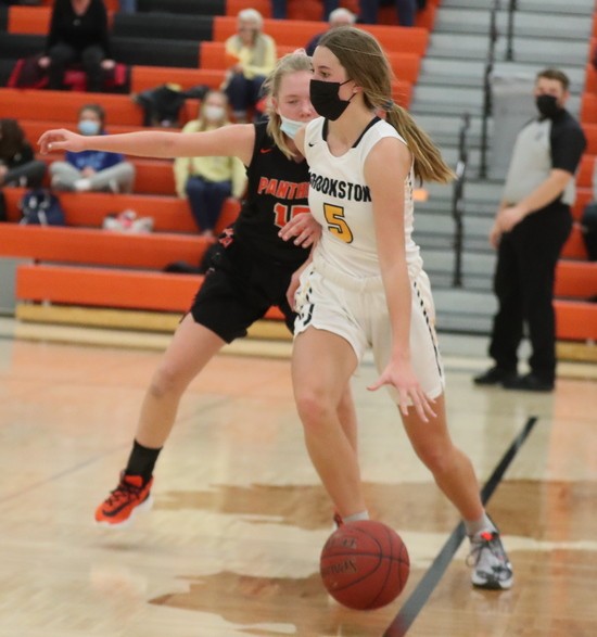 Sometimes you just don’t know how student-athletes are going to react to different situations. Like tonight, the Crookston at Park Rapids girls basketball game started near a half-hour late!! How did it affect the visiting Pirates? Crookston started out with a 19-0 lead before the Panthers Abby Morris hit a three-pointer with 6:52 left in the first half. Not surprisingly the Pirate defense was stalwart in the first half, but even with the 27-3 Pirate lead, Park Rapids was scrappy defensively and made Crookston work for most of their baskets. “Park Rapids is physical at home and I’m sure they were excited to play their first home game,” said Crookston head coach Darin Zimmerman, “so we were happy to get that cushion and we did some good defensive things too. About the only thing was offensively we might have been rushing some possessions, but we were playing extremely hard and I was happy with that.” Halle Winjum continued her strong play on both ends of the court, sharpshooting with 11 points and picking the pockets of the Panthers with four steals to lead the Pirates to a 34-7 lead at half-time. “We settled in the second part of the first half,” said Zimmerman. “As our offense started looking for the outside shot as Park Rapids was pretty aggressive and tough in the paint. I thought Ally Perreault gave us a spark and was all over the place along with Emma Boll in the first half on both ends of the court.”