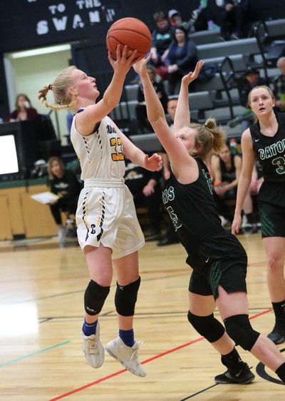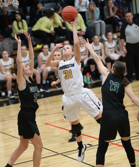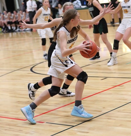 The Crookston Pirate Girls Basketball team used outstanding defense and a quick-hit offense to wear down the Badger-Greenbush-Middle River Gators for a 79-60 victory in a game played in “The Swamp” in Greenbush.  “I think, for 36 minutes, this was one of our better games of the season,” said Pirate Coach Darin Zimmerman. “Especially on the offensive end.  We executed and ran the offense well and when they went in, they went in.”