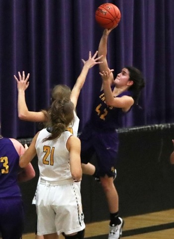 Red Lake Falls opened the scoring with a Gabby Casavan basket over a minute into the game. Crookston’s Gretchen Theis answered by scoring four straight points before the Eagles’ Clara Girdler answered with an old fashion three-point play for a 5-4 lead over four minutes into the game. Crookston’s defense forced some turnovers and that led to an 8-0 run with two free throws from Theis (she scored the first six points of the game for Crookston), an offensive rebound and basket for Emma Boll and Halle Winjum ended the run with back-to-back baskets for a 12-5 lead. Crookston slowly built on their lead and took a 22-11 lead halfway through the half after Abby Borowicz made a three-pointer. “We did a lot of things well in the first half of the first half,” said Pirate Coach Darin Zimmerman. “We played good defense, we executed on the offensive end and were playing well.” The teams played even the rest of the half and Crookston took a 37-28 lead into halftime. “Red Lake Falls did some nice things against us late in the first half,” said Coach Zimmerman. Red Lake Falls Coach Brian Remick said he was happy with how his team finished the half after a slow start. “I thought we played better as the half went along. It is tough to replicate what Crookston can do in practice so it was nice to see the girls work hard and finish the half strong.”