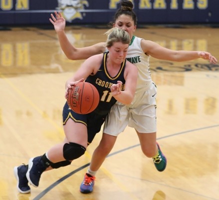 East Grand Forks started the second half strong with a 7-2 run behind five points from Maddy Manger. Crookston led 32-18 when they went on a 10-0 run with five different players (Hayden Winjum, Abby Borowicz, Halley Winjum, and Dani Boyle) all scoring for a 42-18 lead six minutes into the half. “I think we had a good wake up call early on when they went on the run,” said Coach Zimmerman. “We had to burn a time out and after that, things picked up and the girls responded. I wasn’t very happy and the girls weren’t very happy.” East Grand Forks stopped the Pirate run with four straight points, but Crookston answered with nine straight points behind two points each from Halle Winjum, Emma Boll, Jenna Coauette, and a three-pointer from 51-22 with seven minutes left in the game. The teams went deeper into the bench with about four minutes left in the game and Crookston continued to pull away for a 63-27 victory. “I thought our bench played well all night long,” said Coach Zimmerman. “I thought Madison Hoiland came in and played well. I thought Jenna played good for us and showed some good things, especially with some nice drives.”