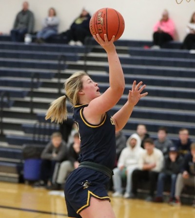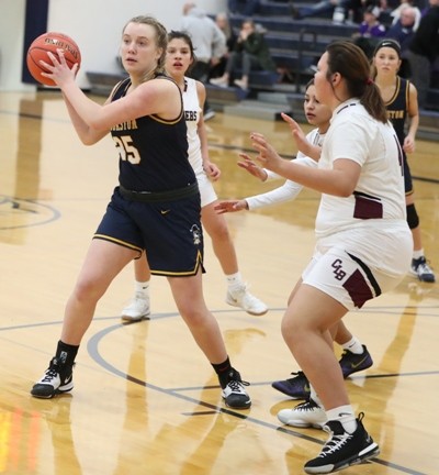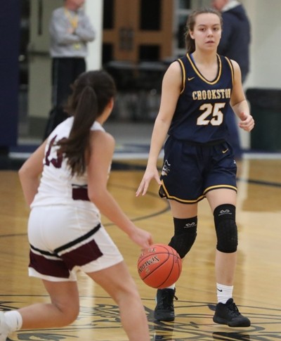 Crookston started the game on a 12-1 run sparked by stellar defense with a handful of steals, combined with an offensive spark off the bench from Halle Winjum and Abby Borowicz. “Defensively we executed with that fast start,” said Pirate Coach Darin Zimmerman. “Halle and Abby are terrific basketball players and they give our team a different dimension and play with a lot of poise for their age.” Cass Lake-Bena made their first basket of the half with a Danae Wilson three-pointer to get within a 12-4 deficit. Crookston responded with five straight points with a Gretchen Theis free throw, a Halle Winjum steal that led to an Emma Borowicz basket, a Kasey Cwikla offensive rebound and basket for a 17-4 lead over halfway through the half. “Kasey gave us a lot of energy inside today,” said Coach Zimmerman. “She anchored the defense in the paint and had a great game on the glass.” Crookston was called for a technical foul for too many players on the floor when there was confusion after a timeout and Madison Hoiland ran out on the floor for the sixth Pirate player and Cass Lake-Bena made both free throws to get within a 17-6 deficit with seven minutes remaining in the half. Another technical foul was called with 6:25 left in the half when a Cass Lake-Bena player argued a foul call and Crookston’s Theis made the two technical foul shots and then made the first free throw in a bonus situation and followed with another free throw. Over the next minute, the Pirates added four more points for a 25-6 lead before Cass Lake-Bena answered with four points. Crookston stopped the run with a rebound and beautiful pass from Emma Borowicz to Halle Winjum for a layup, which was followed by an Emma Borowicz free throw for a 28-10 lead. The teams played even the rest of the way and Crookston took a 35-17 lead into halftime. Crookston went to the free-throw line a bunch in the first half and made 15 of 21 attempts. “We are a pretty aggressive team and we are going to get to the line a bit,” said Coach Zimmerman. “We shot well today and that was good and we were pleased with the first half, but we feel we didn’t execute like we needed to.”